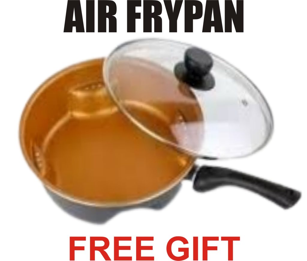 NON-STICK AIR FRY Pan Non-stick air stir fry pan fries without oil or any other source of fat. non-stick air stir fry trilogy is an innovative, multi-purpose dry cooker, with which you can fry for the whole family without oil.